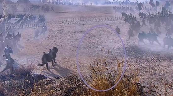 Trong cảnh quay chiến đấu, mặt cỏ lúc đầu có màu xanh...