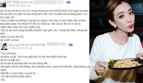 Liên tục lời chê bai của thực khách sau khi tới thưởng thức đồ ăn tại quán của Thu Trang