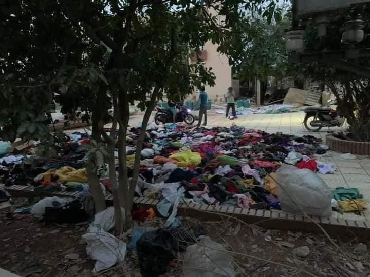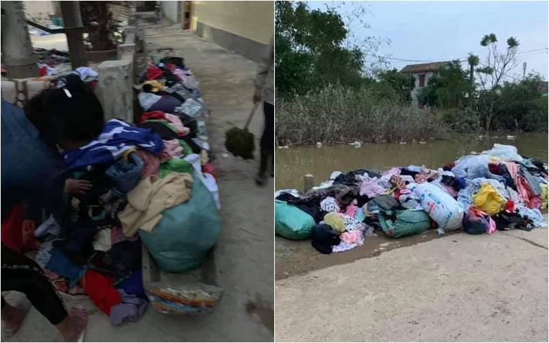 Quần áo ủng hộ miền Trung được cho vứt đống ở bụi cây, bờ ao.