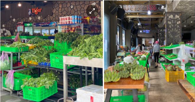 Quán bar tận dụng không gian để làm sạp bày bán rau củ. Ảnh: Hạ Đào.