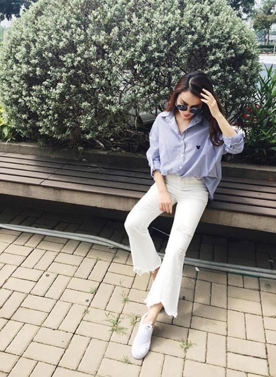 Hàn. Quần jeans "xé gấu" là lựa chọn hàng đầu của cô để xây dựng hình ảnh