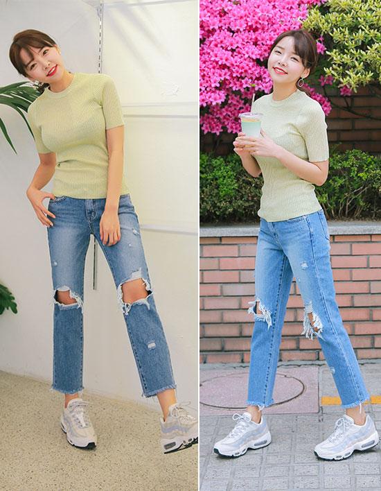 Quần jeans lửng, "xé gấu" có tác dụng làm cho đôi chân bạn trông dài hơn. Hình