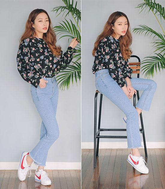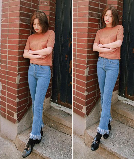 với những món đồ sành điệu trên thế giới. Quần jeans loe nhẹ, rách "nham