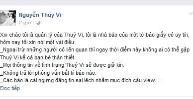 Chia sẻ mới nhất trên trang cá nhân của Thúy Vi: Xin chào tôi là quản lý của Thuý Vi, tôi là nhà báo của một tờ báo giấy có uy tín, hôm nay tôi xin nói một vài điều: