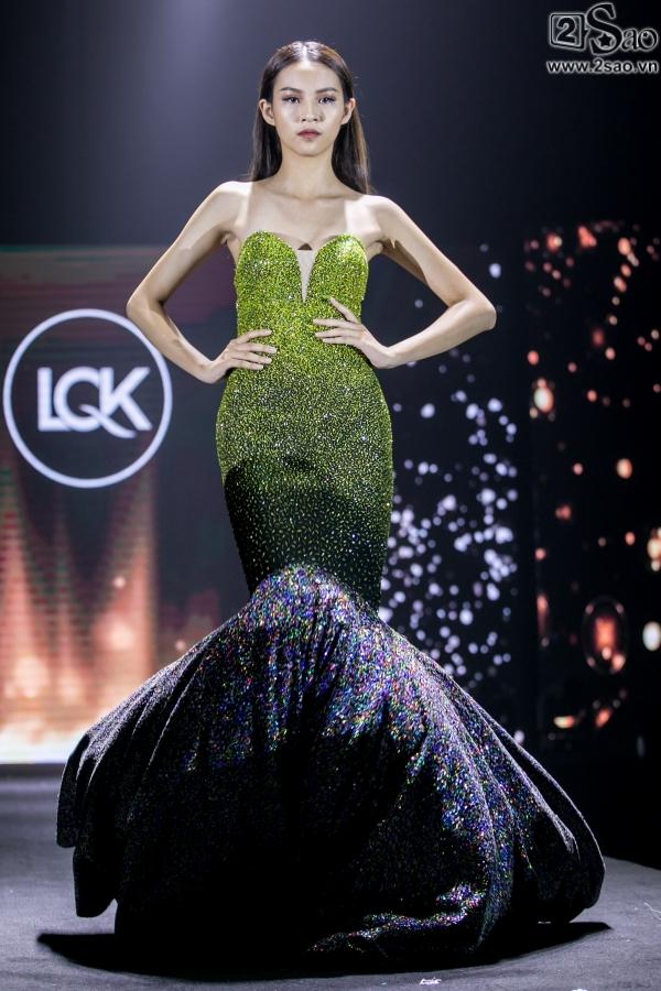 Cô em út Phí Phương Anh với những bước catwalk đầy tự tin tuy nhiên với phần chân váy