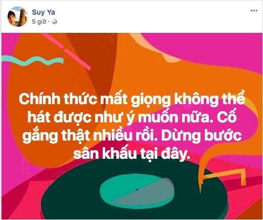 Sau khi đạt danh hiệu quán quân tại cuộc thi Vietnam Idol 2012, nam ca sĩ Ya Suy gần như biến mất khỏi giới giải trí showbiz. Tuy nhiên mới đây, nam ca sĩ bất ngờ chia sẻ trên trang cá nhân thông tin việc bị mất giọng, đồng thời chính thức dừng sự nghiệp âm nhạc.