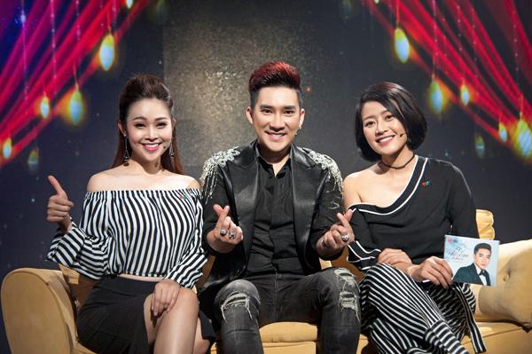 Quang Hà bên hai MC của chương trình là Phí Linh và Thùy Linh