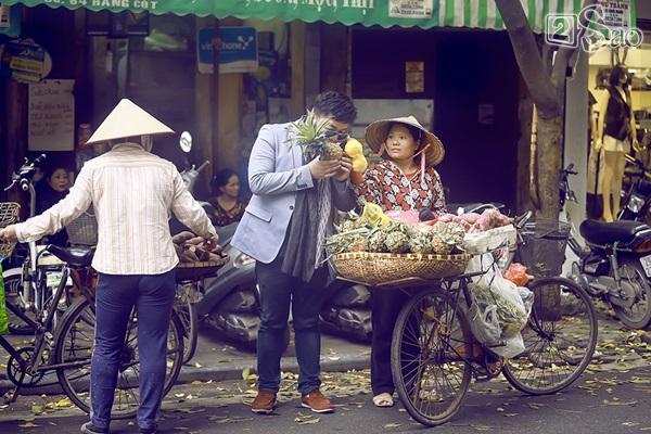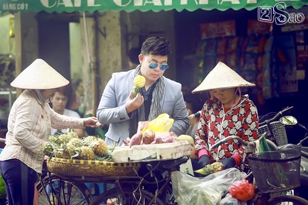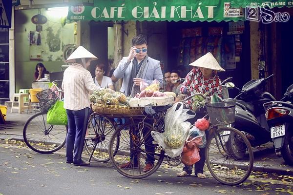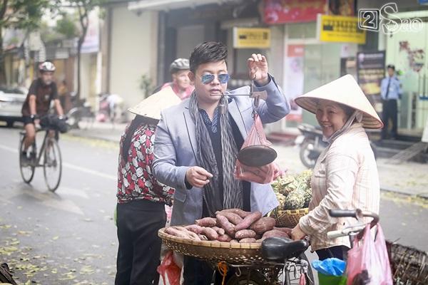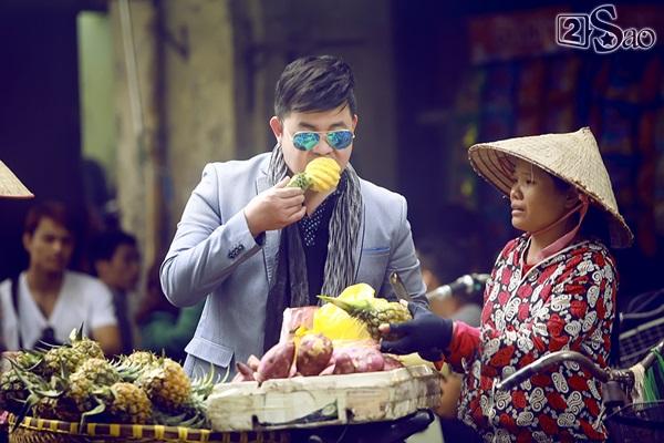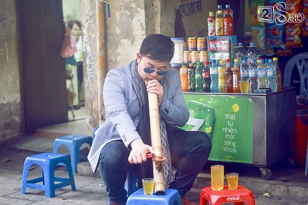 Tính cách vốn bình dị, đơn giản, Quang Lê thích thú ngồi thử hút điếu cày trên quán trà đá, ngắm phố phường, mua hoa quả từ hàng xe rong và còn nhất quyết đòi thử tự... cân hoa