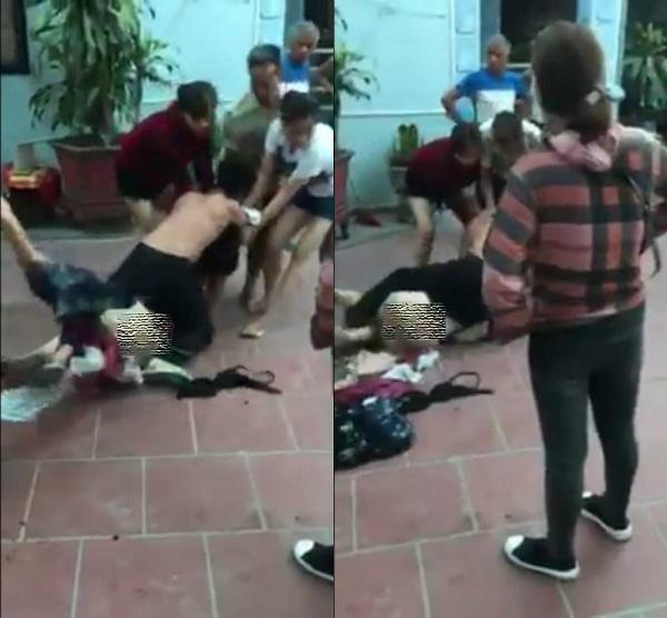 Cặp tình nhân đang ở cùng nhau trong một căn phòng trọ thì người vợ cùng cả gia đình nhà chồng ập đến phá cửa. Một vài người đàn ông giữ chặt anh chồng để cho chị vợ cùng mẹ chồng lôi cô bồ ra ngoài lột quần, đánh, tát, dùng chổi đập liên tiếp vào mặt và người.