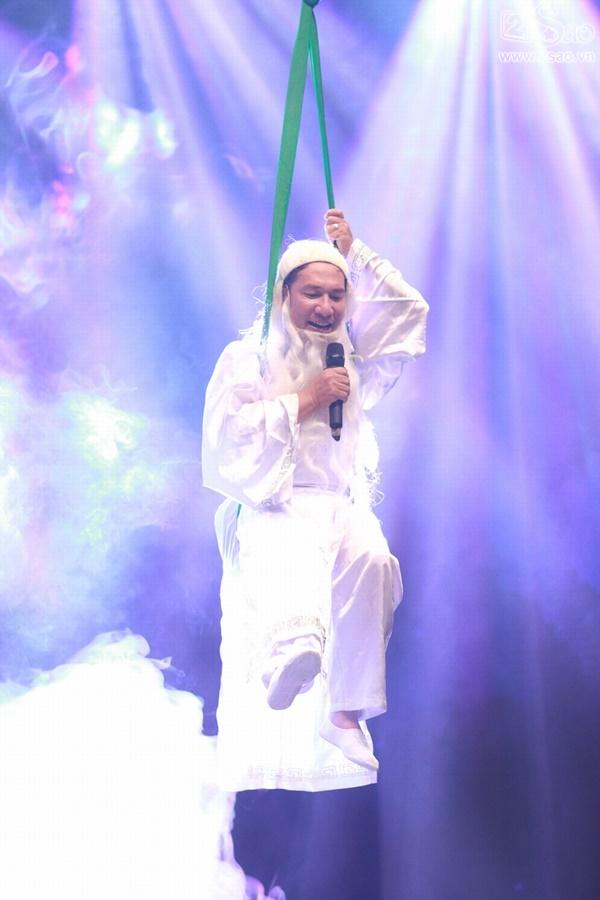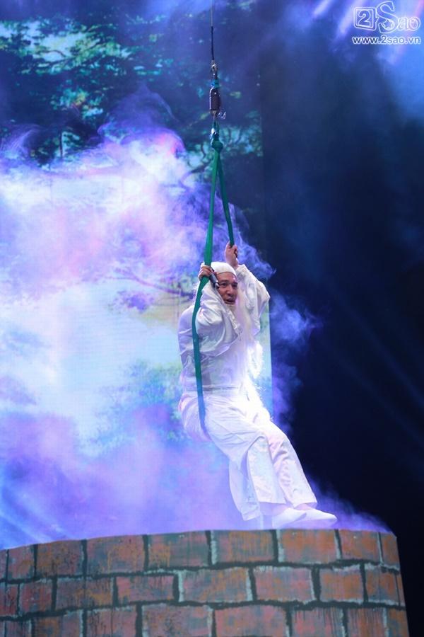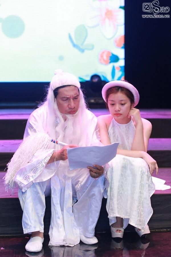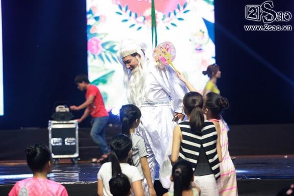 Trở lại buổi tập luyện, với vai trò ông Bụt, danh hài Quang Thắng tỏ ra khá có duyên khi mang lên mình bộ đồ trắng muốt. Anh có nhiều phân đoạn gây chú ý với các em nhỏ như treo mình trên cao bằng dây cáp, hay bất chợt xuất hiện từ trong miệng giếng, chạy vòng quanh sân khấu mà không mệt...