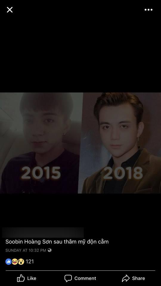 Clip "đẹp tự nhiên" còn chưa kịp nguội, mới đây viện thẩm mỹ D.L bất ngờ công khai trên fanpage hình ảnh Soobin Hoàng Sơn khác lạ và khẳng định nam ca sĩ 26 tuổi có phẫu thuật thẩm mỹ độn cằm. Đính kèm lời khẳng định, D.L gắn 2 hình ảnh khác biệt của mỹ nam họ Nguyễn năm 2015 và sau khi "dao kéo" - năm 2018.