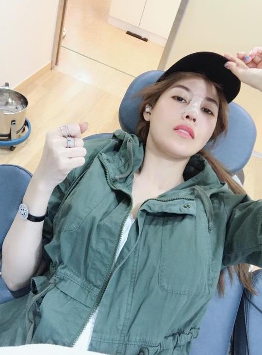 Chiếc mũi được băng bó cẩn thận của Quế Vân sau khi "dao kéo".