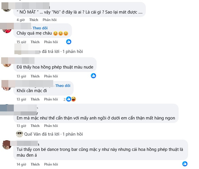 Dưới bài đăng của Quế Vân, nhiều người để lại bình luận chỉ trích: "Khỏi cần mặc đi", "Đã thấy hoa hồng phép thuật", "Mặc như này thì cở ra cho xong"... Trước những lời nhận xét của cư dân mạng, Quế Vân cũng đáp lại: "Nhức mắt thì chịu thôi biết sao giờ? Mình thích thì mình nhích, sợ gì."