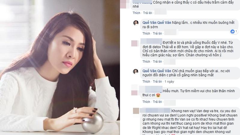 Vừa an yên về bệnh thể xác, Quế Vân lại tiếp tục bày tỏ suy tư vì mắc tâm bệnh. Theo lời nữ ca sĩ Vì em đã biết chia sẻ cách đây ít giờ, tâm trạng cô đang rối bời suy sụp vì bị trầm cảm. Bị chứng bệnh kiểm soát cảm xúc khiến cô không thể chống lại và nghĩ đến tiêu cực.