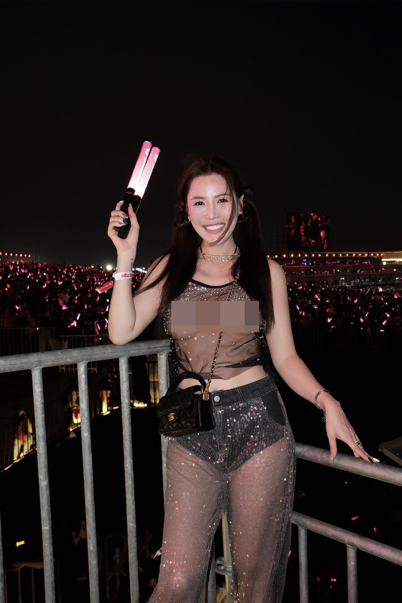 Đỉnh điểm là hôm diễn ra concert Anh Trai Vượt Ngàn Chông Gai, trong khi người hâm mộ đến xem lựa chọn áo dài truyền thống, Việt phục để quẩy concert theo lời kêu gọi của ban tổ chức thì Quế Vân chơi trội khi mặc outfit xuyên thấu không thể sexy hơn.