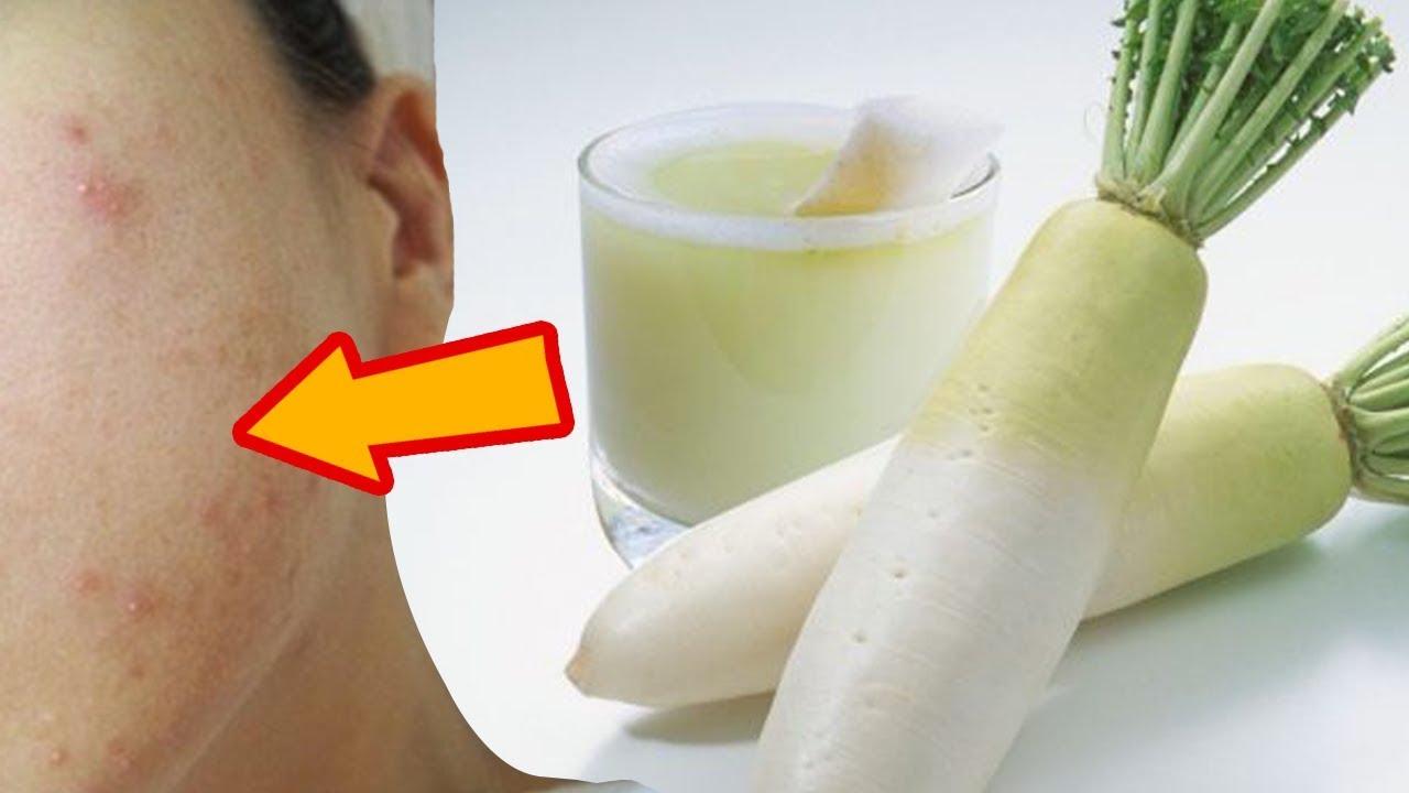 Nghiền củ cải trắng đắp trên mặt để se nhỏ lỗ chân lông, làm sạch da từ sâu bên trong, từ đó trị mụn tận gốc.
