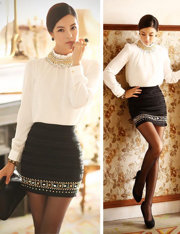 Hai gam màu truyền thống của chân váy đen cùng áo sơ mi trắng không bao giờ bị nhàm chán