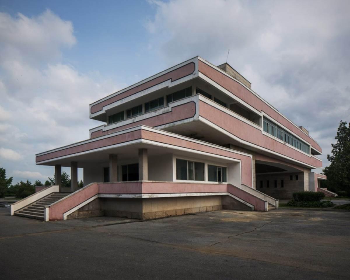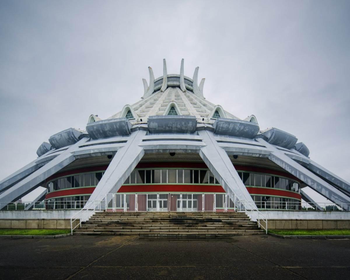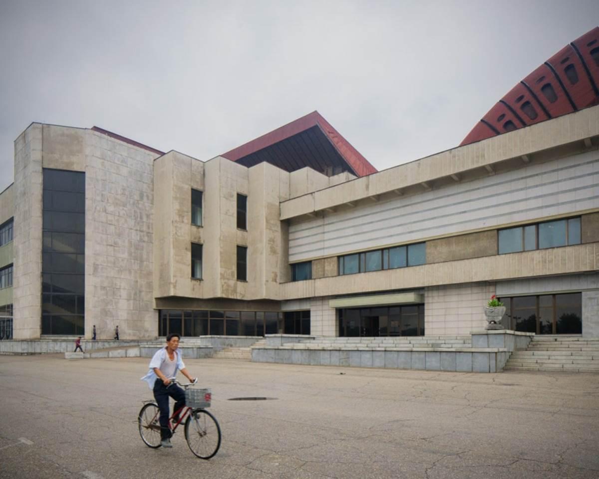 Rạp chiếu phim quốc tế Pyongyang gần như bị bỏ hoang ở rìa thành phố. Tòa nhà bê tông có những góc cạnh đặc trưng của kiến trúc tân cổ điển.