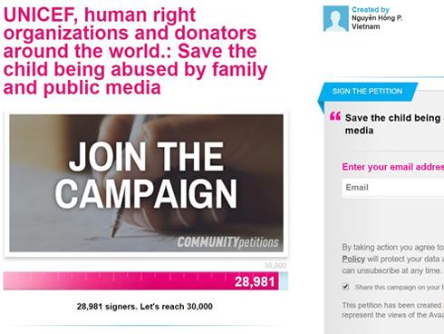 “UNICEF đã liên hệ với Cục Trẻ em, cơ quan quản lý nhà nước của Việt Nam về các vấn đề trẻ em. Cục Trẻ em đang tiến hành điều tra xác minh sự việc. Chúng tôi sẽ tiếp tục lưu tâm đến vụ việc này”, phía UNICEF Việt Nam cho biết.