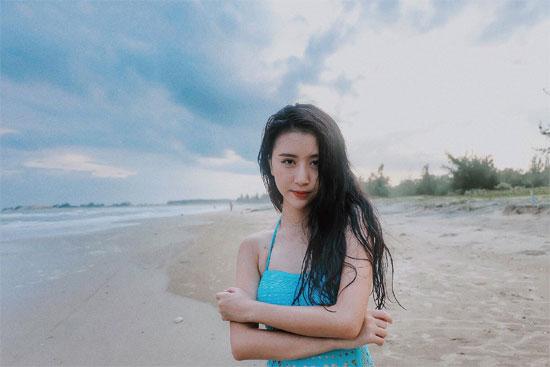 Quỳnh Anh Shyn gợi cảm với bộ áo tắm xanh ôm sát khoe thân hình nhỏ nhắn.