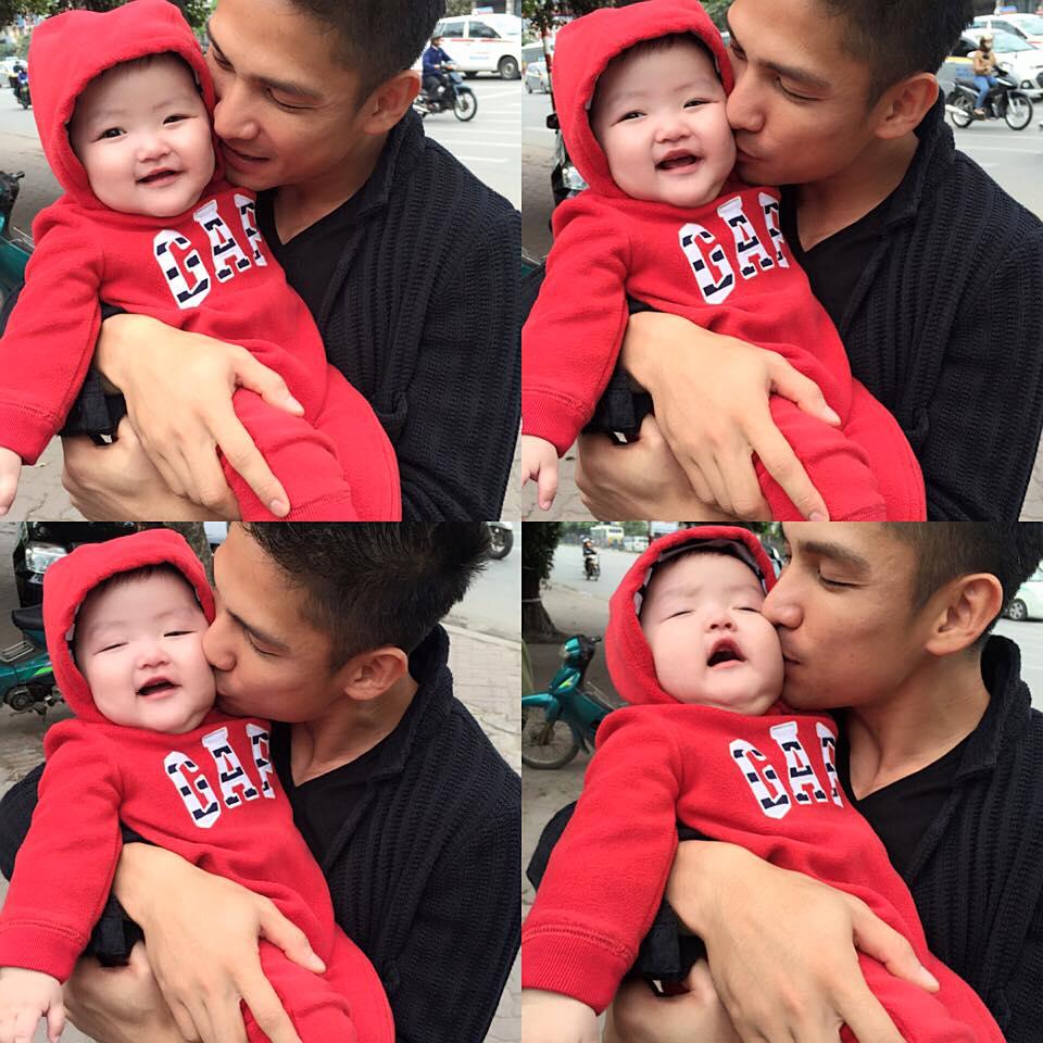 Hình ảnh cũ đáng yêu của con trai và chồng được Tâm Tít chia sẻ.