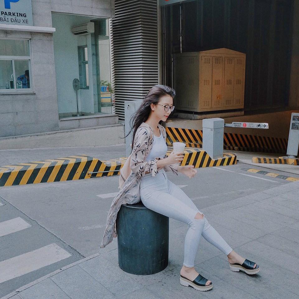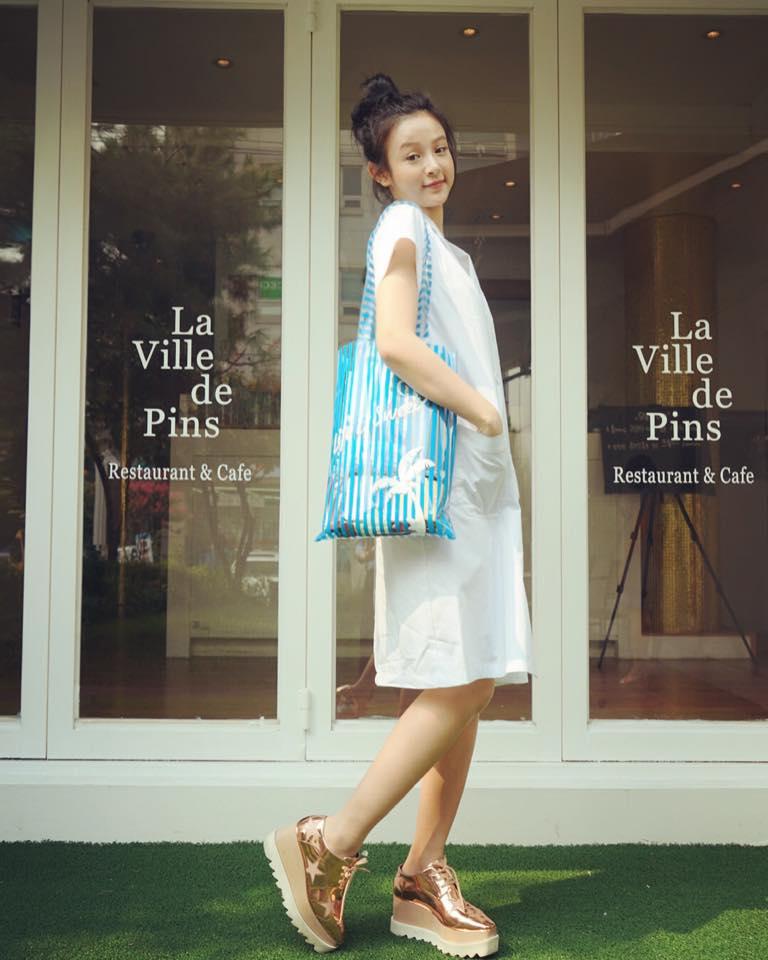 Ở một hình ảnh khác cô nàng lại gây ấn tượng khi xuống phố với cây trắng