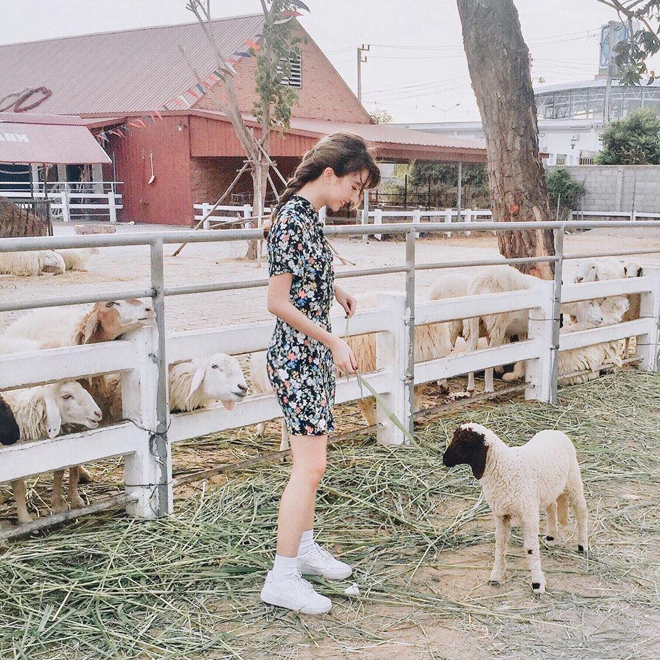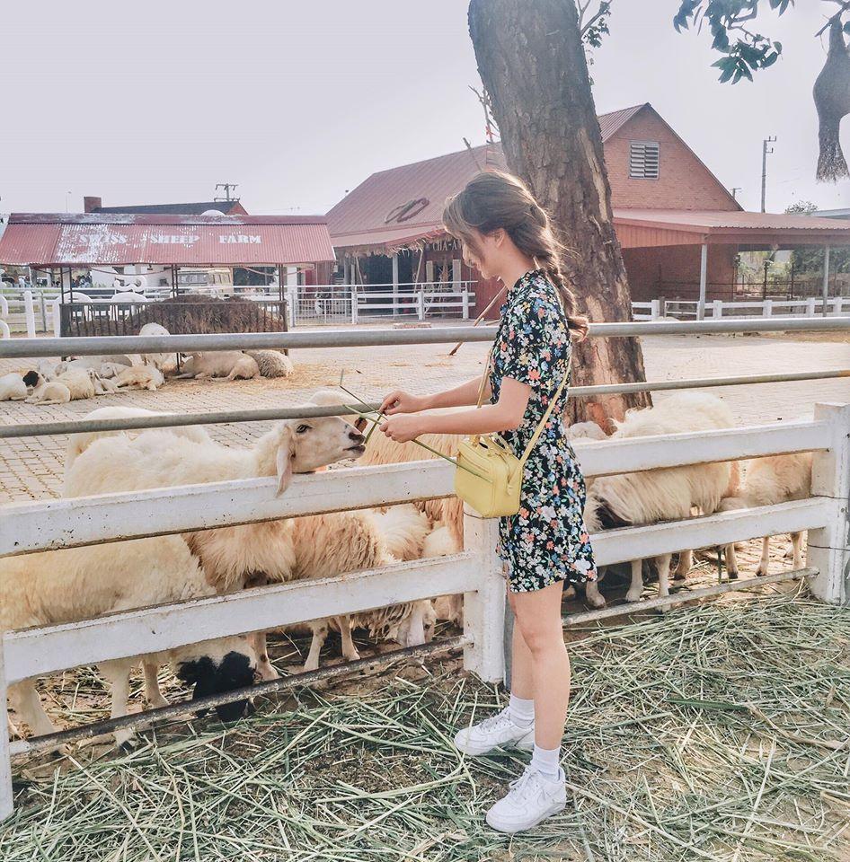 Quỳnh Anh Shyn tỏ ra rất hào hứng khi đi thăm thú nông trại nuôi cừu. Cô nàng