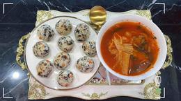 Sự kết hợp hoàn hảo của bộ đôi cơm nắm Hàn Quốc - kim chi.