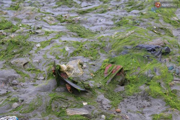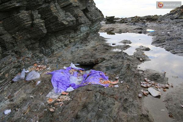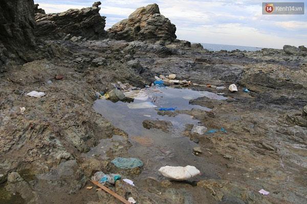 Trên các mỏm đá cũng xuất hiện nhiều rác của du khách vứt lại.