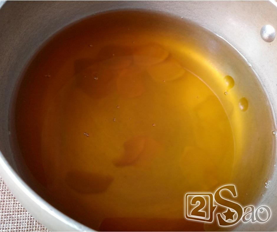 Bước 5: Cho 300 ml nước vào nồi thêm đường thốt nốt và đường trắng vào đun đến khi đường tan thì thêm vài lát gừng vào rồi tắt bếp để nguội.