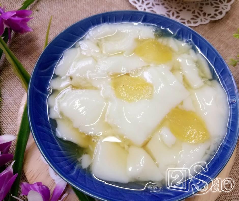 Bước 6: Múc tào phớ ra chén, rưới nước đường có thêm vài lát gừng lên là bạn có thể thưởng thức món tào phớ mát lạnh rồi nhé