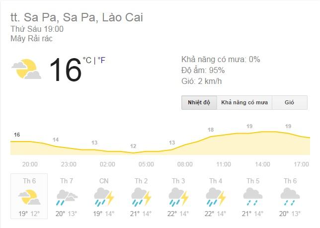Nhiệt độ hiện tại ở Sa Pa và nhiều ngày tới. Ảnh: Google