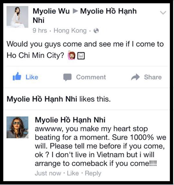 Vào hôm qua, nữ diễn viên nổi tiếng đình đám của TVB Hồ Hạnh Nhi đã bất ngờ chia sẻ một câu hỏi nhỏ lên trang fanpage chính thức của cô tại Việt Nam: "Các bạn sẽ đến gặp tôi nếu tôi đến thành phố Hồ Chí Minh chứ". Ngay lập tức lời gợi ý nhỏ này của Hồ Hạnh Nhi đã được các fan chia sẻ với tốc độ chóng mặt, kèm theo đó là tâm trạng phấn khích khi được chính thần tượng tiết lộ thông tin lịch trình cá nhân.