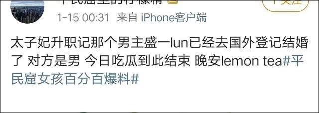 Sáng 15/1, truyền thông Trung Quốc và người hâm mộ hoang mang trước thông tin Thịnh Nhất Luân đã bí mật kết hôn với bạn trai ở nước ngoài. Thông tin bắt nguồn từ một vài blogger nổi tiếng, khẳng định mỹ nam Thái tử phi thăng chức ký là người đồng tính, thậm chí đã đăng ký kết hôn với bạn trai.