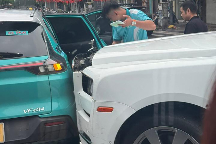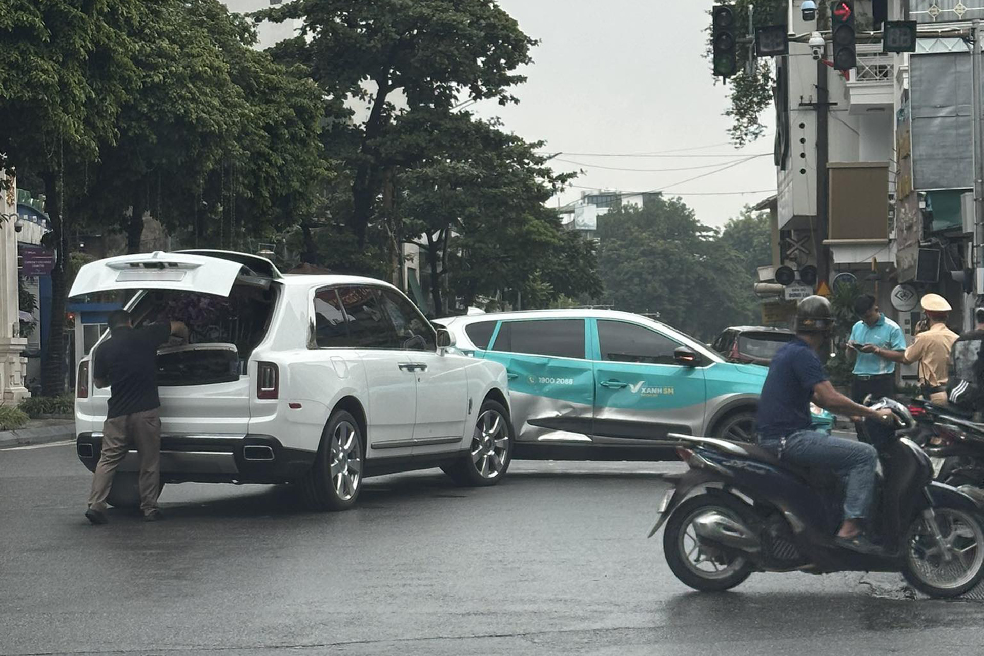 Sáng ngày 14/10, tại nút giao giữa phố Nguyễn Thái Học và Lê Duẩn (TP.Hà Nội) cũng xảy ra vụ va chạm giữa chiếc xe siêu sang Rolls-Royce Cullinan và chiếc xe điện VinFast e34. Hậu quả, chiếc Cullinan bị xước cản trước và rời phần ốp trên mặt ca-lăng, trong khi chiếc e34 bị móp nặng phần thân xe.