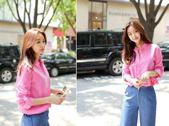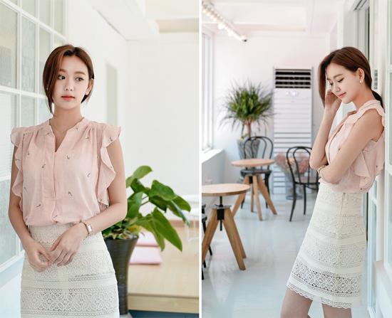 Những bạn gái dáng người mảnh dẻ nên mặc chân váy bút chì ren màu trắng kết hợp áo sơ mi kiểu cách màu hồng nhạt. Đây là hai gam màu nhẹ "xua tan" cái nắng oi ả ngày hè lại vừa khiến dáng bạn cuốn hút hơn.