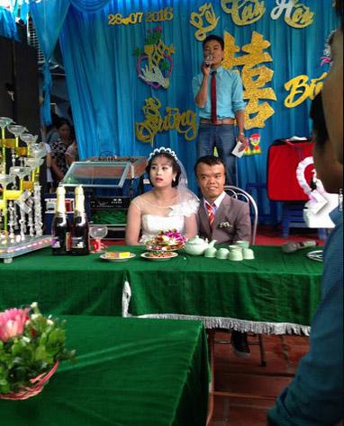 Ngày hôm nay (28/7), tại xóm nhỏ Liên Sơn, làng Đại Triều, Hoằng Phong, Hoằng Hóa, Thanh Hóa đã diễn ra đám cưới cổ tích giữa chàng trai có chiều cao khiêm tốn với một cô gái cao ráo, đẹp người, đẹp nết. Ngay sau đám cưới, một Facebook cá nhân đã tung ảnh lên mạng. Ngay lập tức, loạt ảnh này đã có nhiều lượt like và chia sẻ.