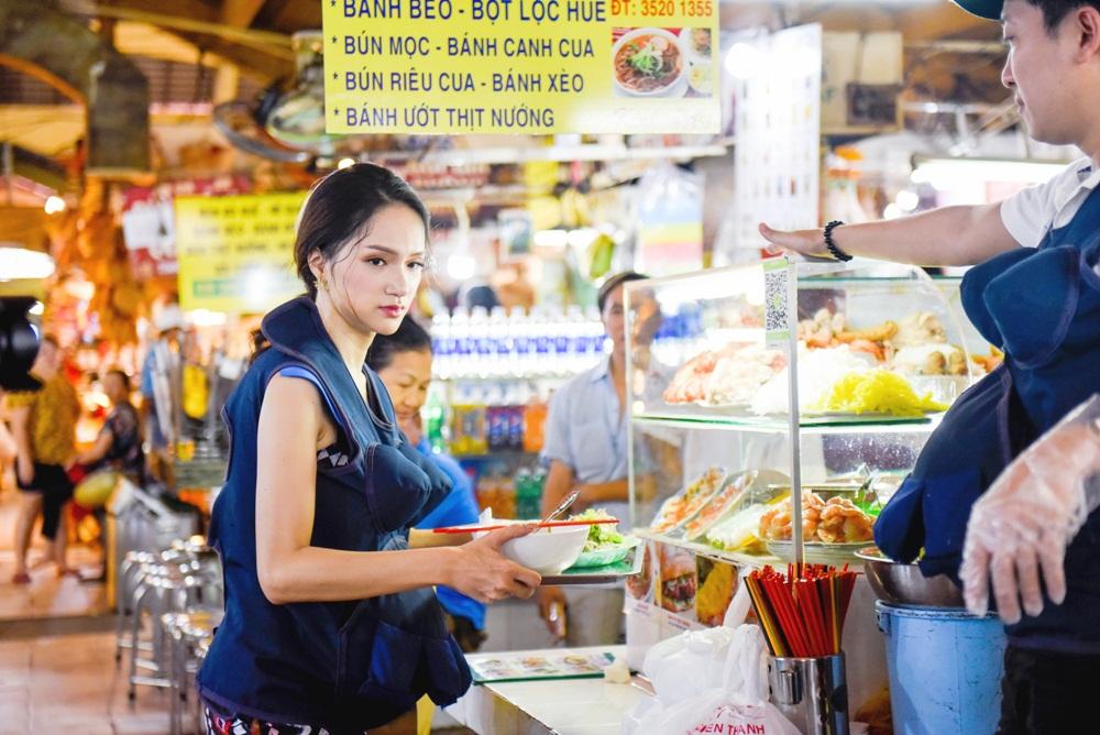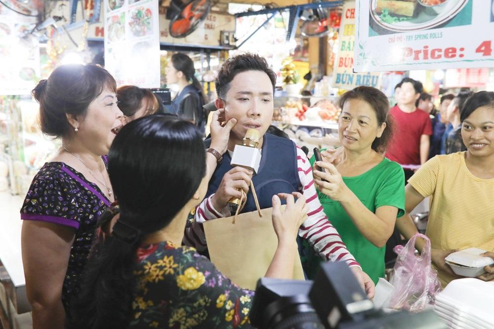 Là thành viên nữ duy nhất phải đi rao hàng, Hương Giang Idol không màng hình tượng Hoa hậu. Cô vác bụng bầu khệ nệ vừa đi vừa chào mua hủ tiếu còn Trấn Thành và Hứa Vĩ Văn dùng đủ mọi chiêu trò để gây sự chú ý với người mua hàng tại chợ.