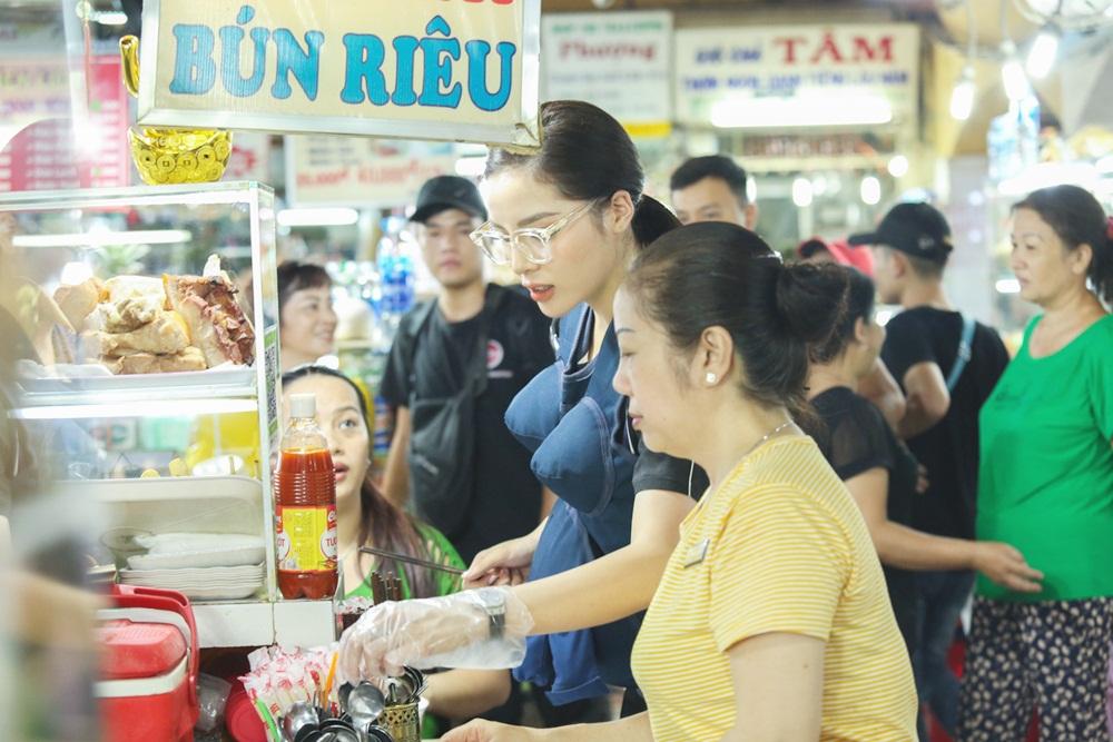 Kỳ Duyên bán bún trong khi Hứa Vĩ Văn đi mời gọi khách hàng.