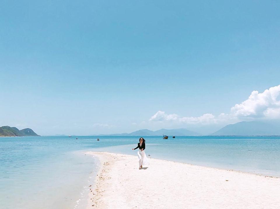 Cách TP.HCM gần 500 km, đảo Điệp Sơn nằm trong vùng biển thuộc vịnh Vân Phong, tỉnh Khánh Hòa. Bên cạnh vẻ đẹp thiên đường, xanh trong không tỳ vết, Điệp Sơn còn ghi điểm đối với du khách bởi con đường nổi giữa biển độc nhất vô nhị. Đối với những du khách ở Hà Nội, đảo Điệp Sơn là lựa chọn lý tưởng để tránh những đợt nóng oi bức của mùa hè ở miền Bắc. Ảnh: @Tranthanhtu.