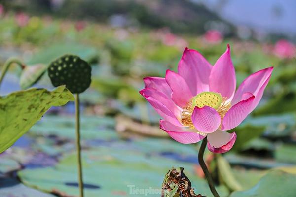 Sen nở rộ khiến cả cánh đồng đẹp lung linh, tạo nên khung cảnh như tranh vẽ.