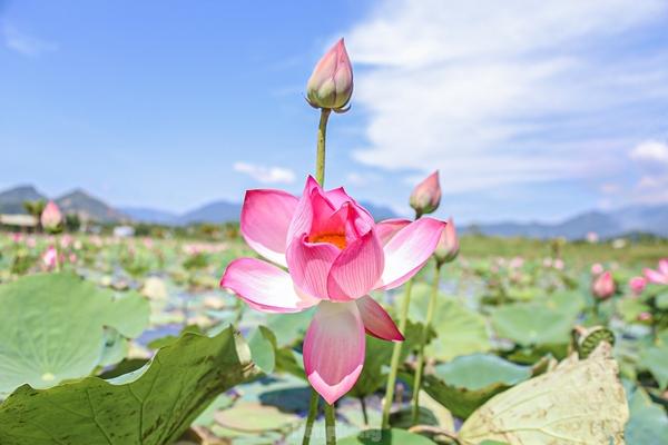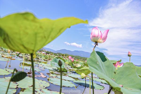 Khi mặt trời vừa mọc là thời điểm đẹp nhất để mọi người hòa mình vào thiên nhiên trong lành, chìm vào không gian yên bình, mát mẻ để ngắm nhìn những bông hoa sen rực rỡ vùng ngoại ô Đà Nẵng trong ngày hè oi bức.