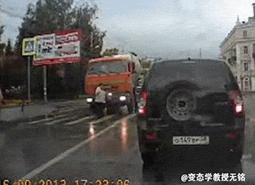 Một xe điên khác rẽ sang đường mà không để ý những phương tiện giao thông khác. Khiến một người đi đường bị chiếc xe chèn qua người.