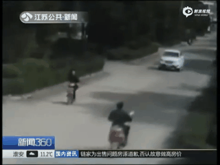 Một vụ va chạm khác xảy ra giữa người đi xe máy và ô tô. Do ô tô lao quá nhanh, người đi xe máy bị hất lên nắp ca pô và rơi xuống đường, xe máy cũng bị kéo lê một đoạn dài.