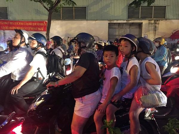 Trẻ em tan học vừa qua cơn mưa lại gặp kẹt xe. Ảnh: Phước Tuần.