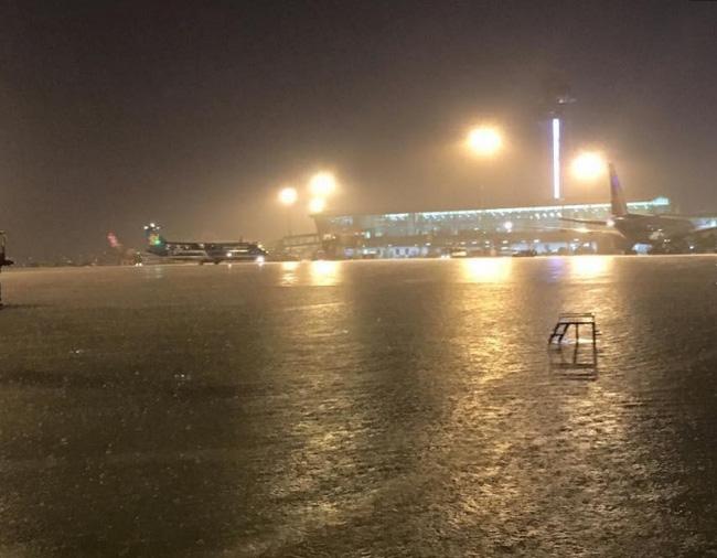 Mưa lớn khiến sân bay chìm trong biển nước. Ảnh: beatvn