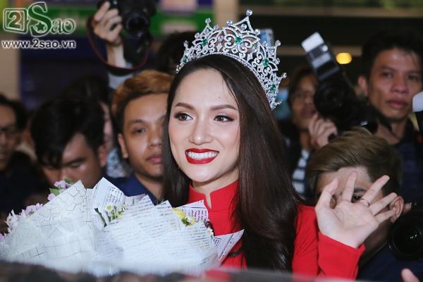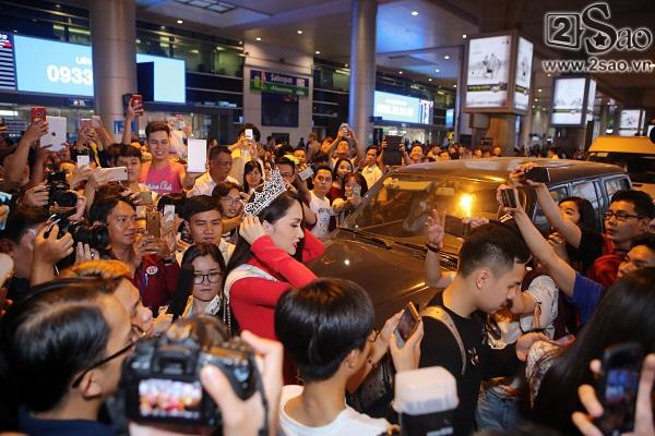 Để chào đón Hương Giang, rất đông người hâm mộ đã xếp hàng phủ kín khu vực sân bay trước đó hàng giờ. Giây phút người đẹp chuyển giới bước ra từ khu vực check-in đã khiến không khí nơi đây thực sự vỡ òa.