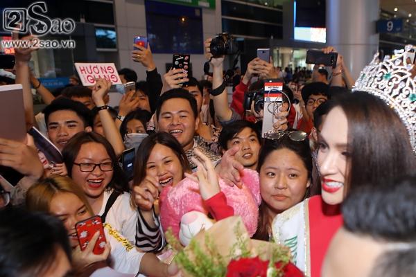 Người hâm mộ chen chúc, tranh thủ chúc mừng và chụp hình cùng tân hoa hậu.