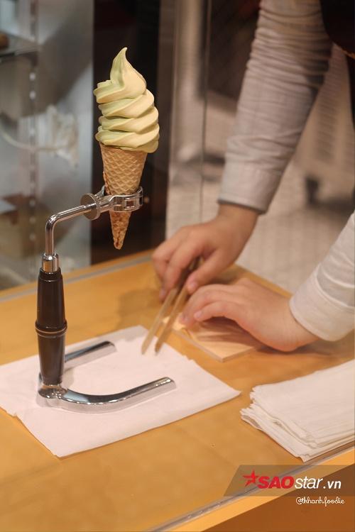 Về phần hương vị, kem Matcha có vị thơm nhẹ, tuy không quá mạnh và chát như các quán chuyên về đồ Nhật nhưng cũng khá dễ ăn. Vị Vanilla được đánh giá cao hơn về mặt hương vị vì có mùi thơm đặc trưng và vị ngọt vừa phải. Kem thiên về dòng soft-creme, được đánh bông và bắt theo hình sóng, chất kem đặc, béo và xốp. Phần bánh ốc quế khá ổn, giòn và thơm mùi vanilla, được nướng theo kiểu xếp lớp nhiều tầng nên khi ăn gần hết kem hơi dễ ngán một tẹo.
