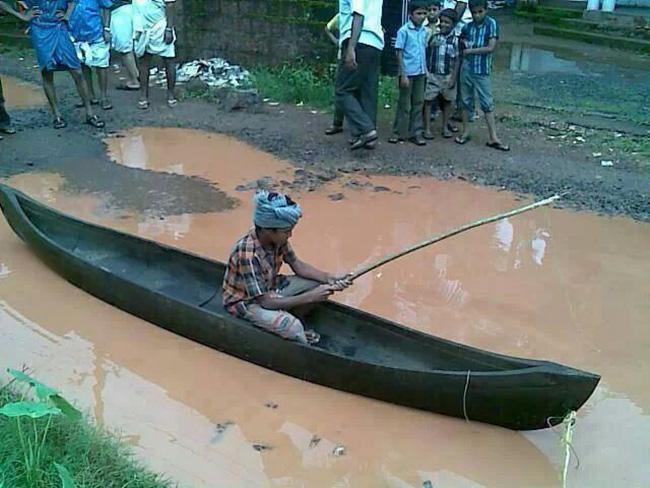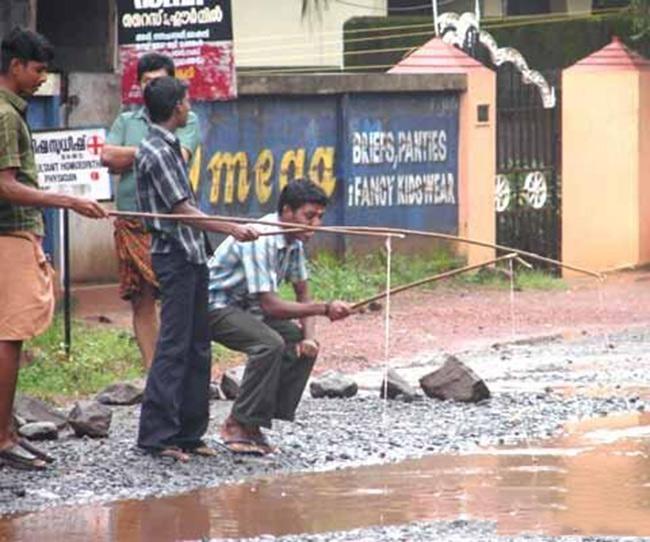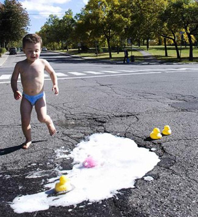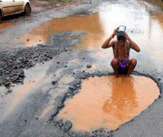 "Ổ voi" giữa đường biến thành nhà tắm.